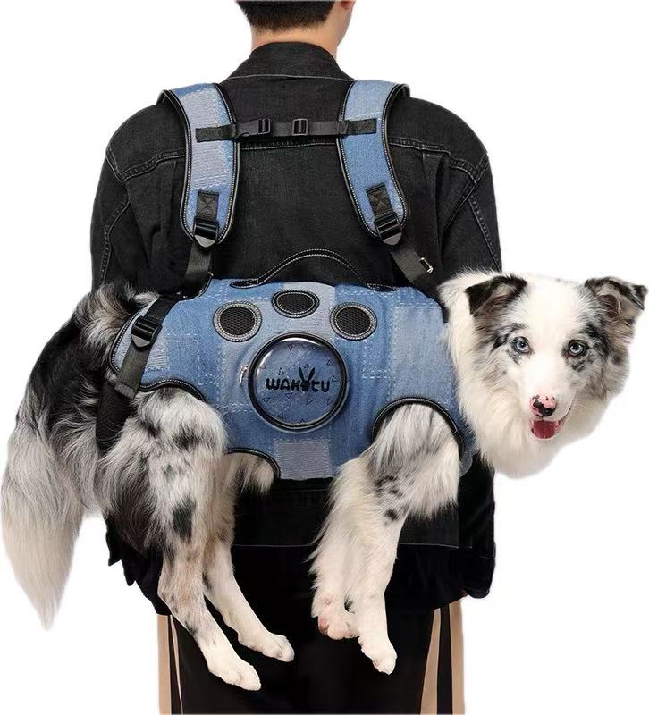 A stylish and comfortable hands-free pet carrier backpack made with breathable denim fabric. Features a transparent storage pocket, multiple ventilation holes, adjustable straps, and double safety buckles. Perfect for carrying small to medium dogs during walks, travel, or daily outings.