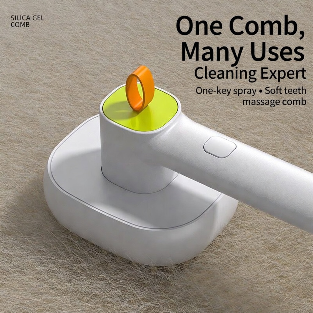 The Silica Gel Spray Massage Comb is an innovative 2-in-1 grooming tool designed to make brushing your pet easier and more enjoyable. With one simple press, it releases a fine, gentle mist that helps loosen dirt and reduce static, while the soft, rounded silica gel bristles gently massage the skin, remove loose fur, and detangle knots without causing discomfort or stress. The skin-friendly material and smooth bristles prevent irritation, making it safe for daily use on both cats and dogs. Whether you want to reduce flying fur around the house, keep your pet’s coat clean and healthy, or provide a relaxing grooming experience, this spray massage comb is the perfect all-in-one solution. Compact, easy to use, and highly effective — a must-have for every pet parent.